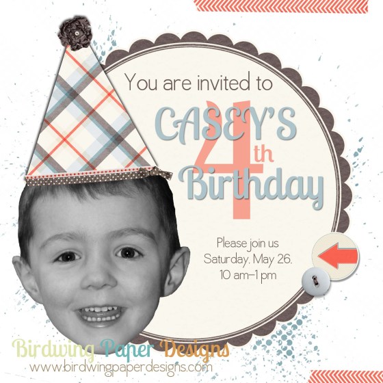 It seems like most of the kids we know have spring birthdays, including Casey and Robyn. I have already started planning both of their parties and just finished designing the invites. I worked on Casey’s first and liked it so much that I made Robyn’s in the same style but, of course, more girly.