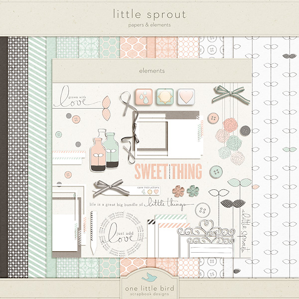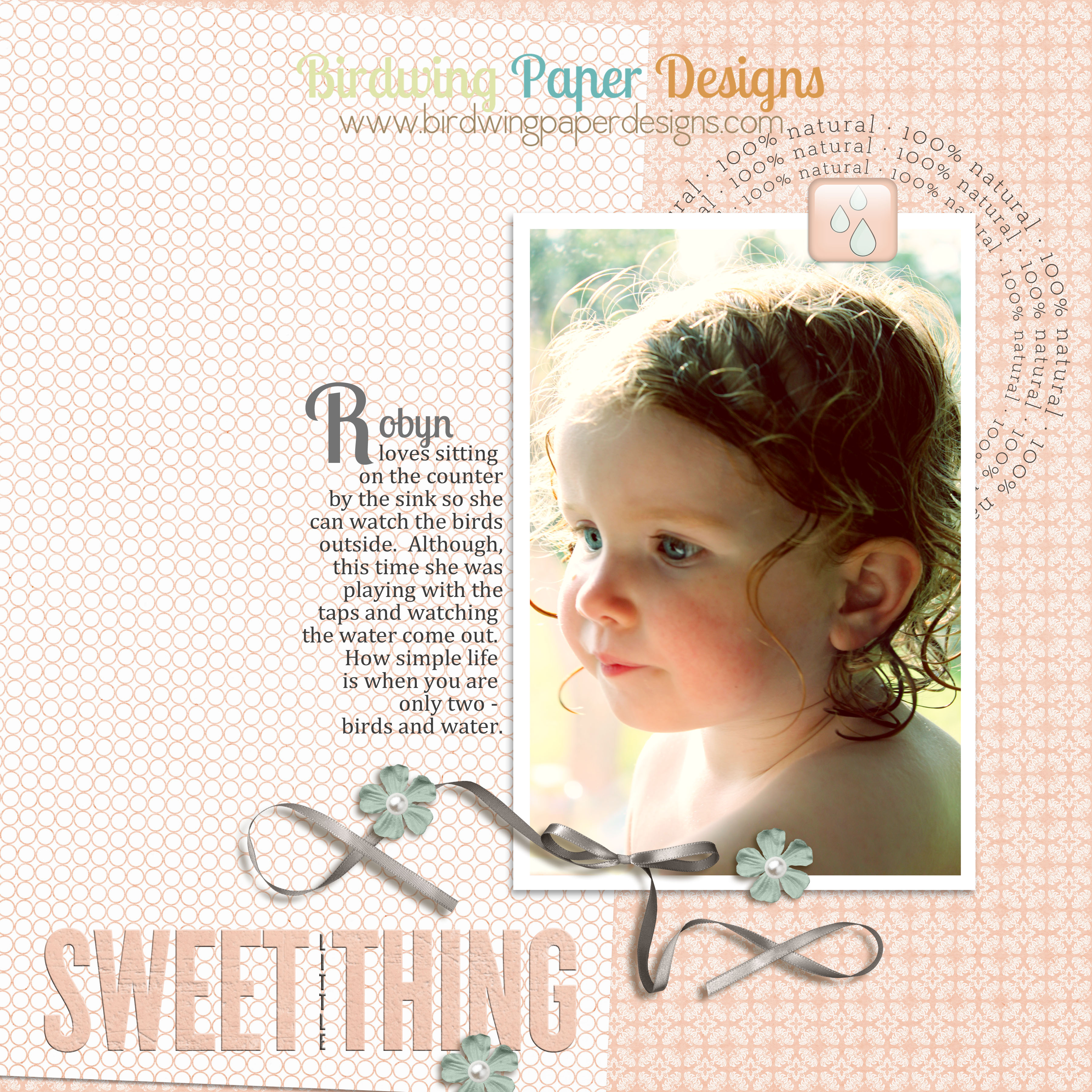 I loved the “After” picture and it worked perfectly with this new kit from One Little Bird called “Little Sprout”. I am using this kit for a baby book and thought the colours were just right for the picture of Robyn.