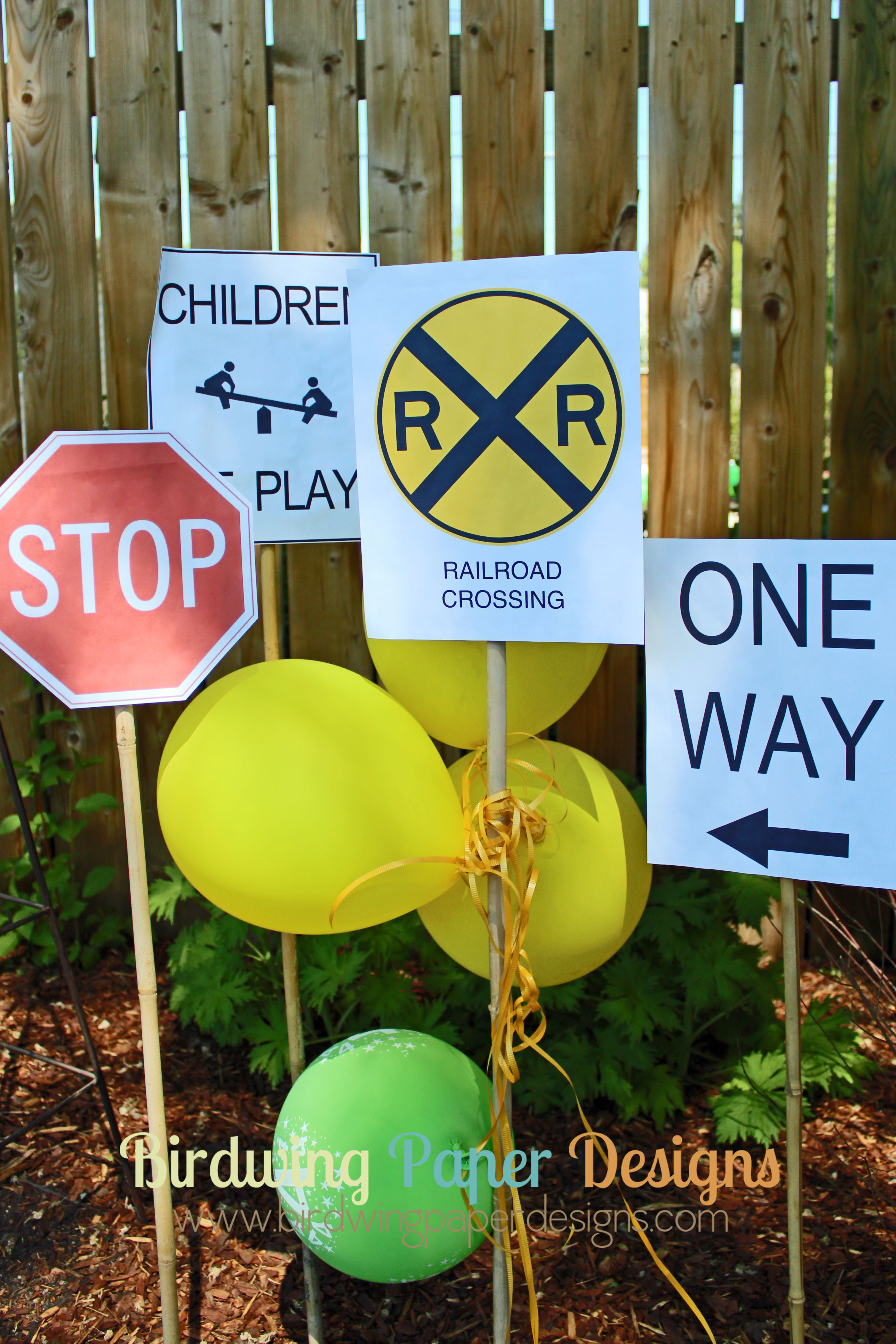 Casey celebrated his fourth birthday on May 26 with a backyard party and a few friends.  A month ago he said he wanted a cars theme for his party and then just two weeks ago he changed his mind to trains after we saw Thomas the Tank Engine in Calgary.  I had no idea if I should stick to the cars theme or change it to trains!  I was looking for ideas on Pinterest when I saw a planes, trains, & automobiles party from hwtm.com and knew my problem was solved.  Although I think the party did lean more toward trains than cars and planes, but that is just because we have so much Thomas stuff already!