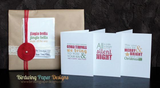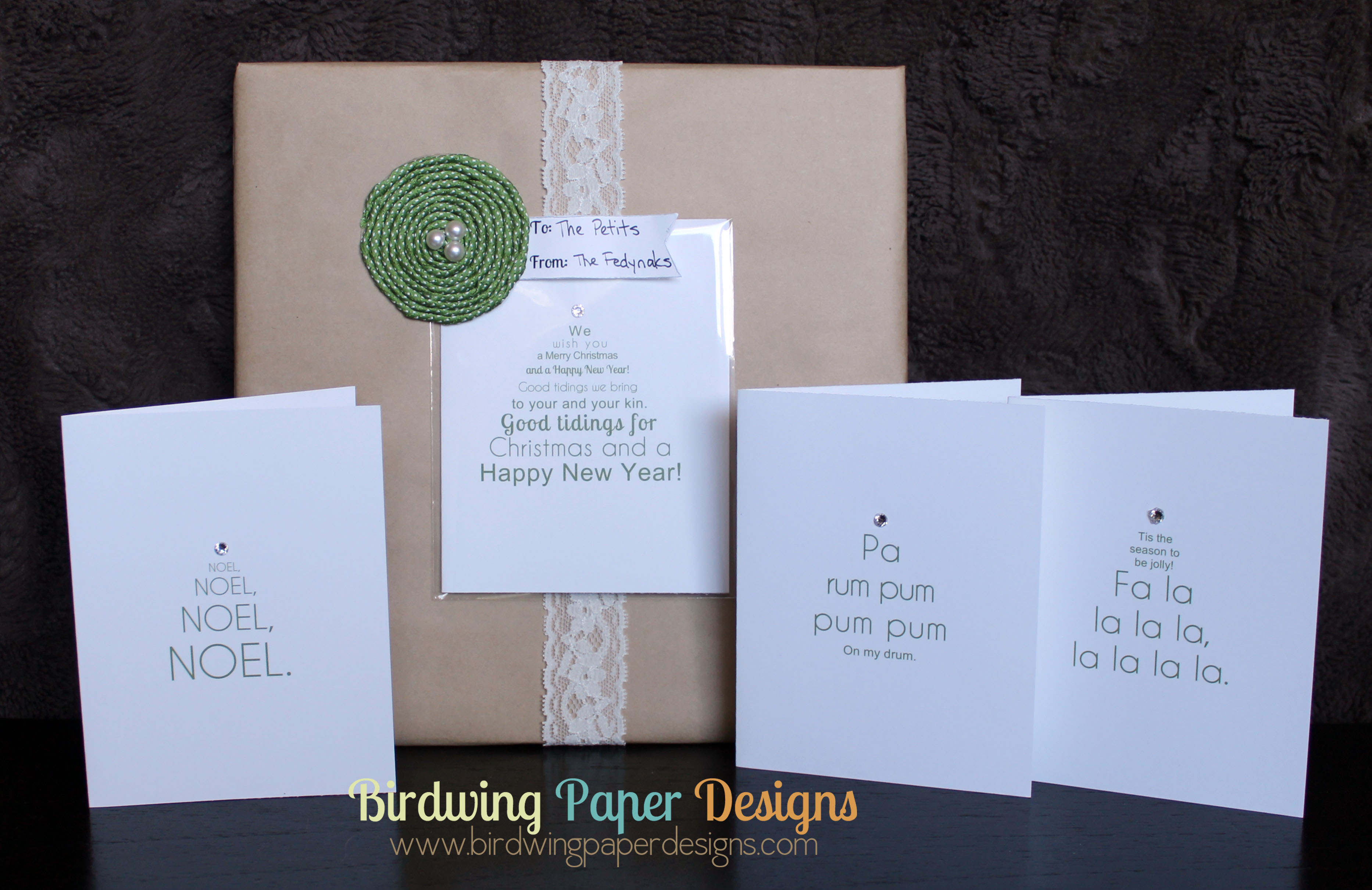 All cards come with either a white or clear envelope. In some of the pictures above I used the cards in clear envelopes to decorate the front of the Christmas gifts instead of just using a boring store bought tag.