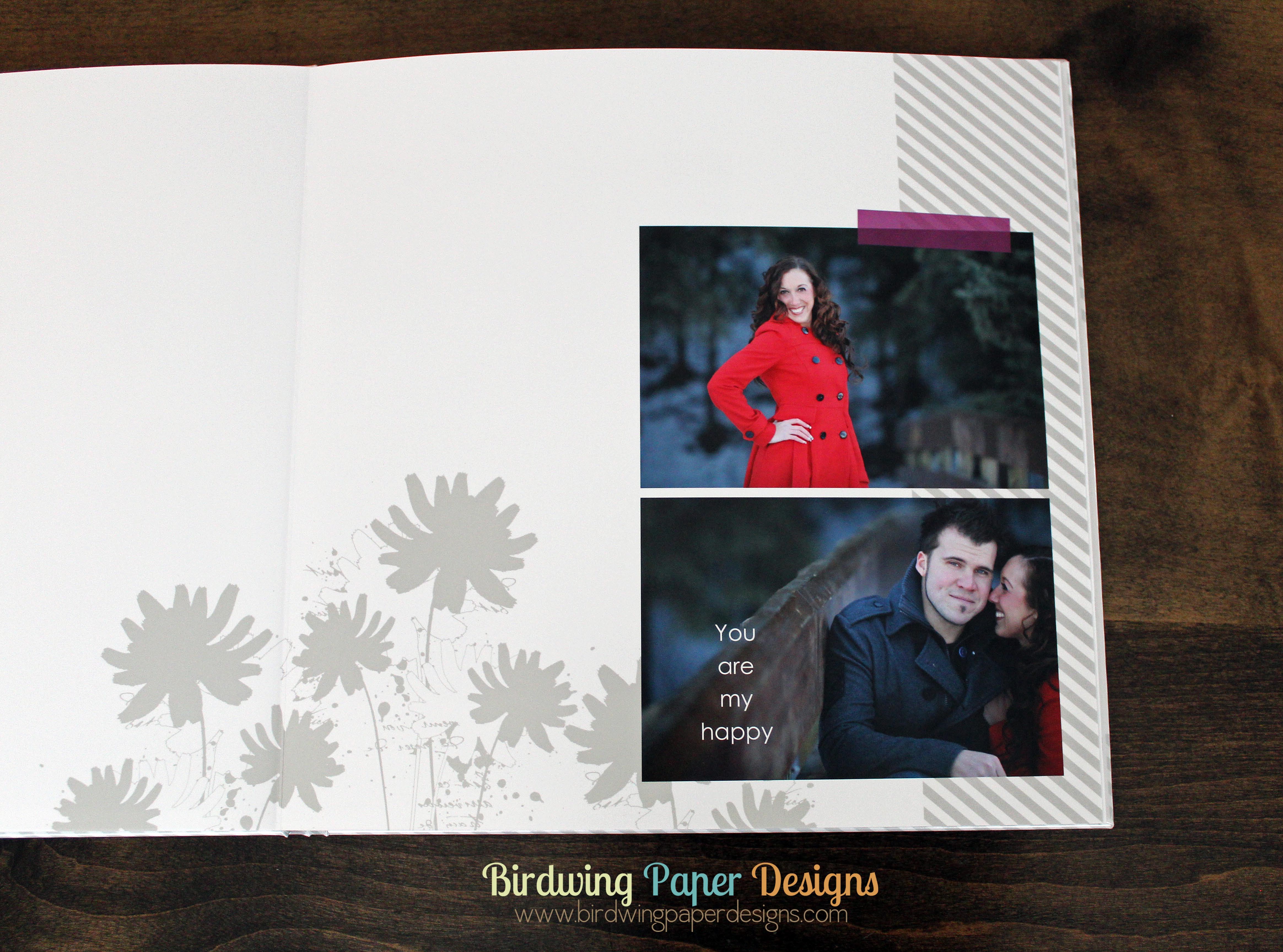 The guest book for Dana and Andy’s wedding was inspired by their invitations and featured their engagement photos. I used digital elements from Paislee Press, Katie Pertiet, and Stampin’ Up.