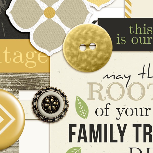 When I inherited my mom’s button collection I wondered for years what I would do with all the buttons from her sewing days.  Well, two of them ended up in the digital kit!  I had hundreds to choose from and found the perfect ones to go with the theme of family history.