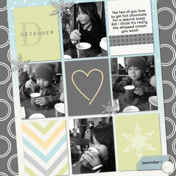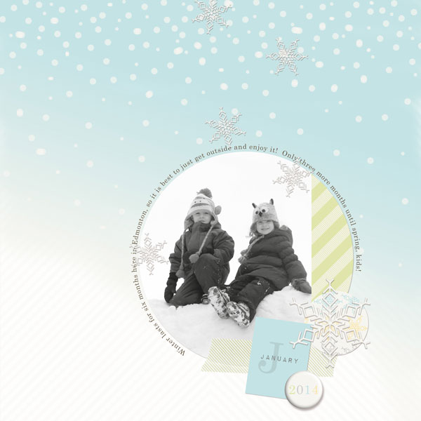 The next three editions: spring, summer, and fall, will be offered throughout the year in the same colour palette and offer seasonal papers, cards, and elements. These digital kits can be used to design individual layouts or create a full year family album or photo book. The latter option is what I plan to do, of course, but I will discuss more about that in a future post. Until then, enjoy the free kit and please share any layouts that you create because I would love to see them!