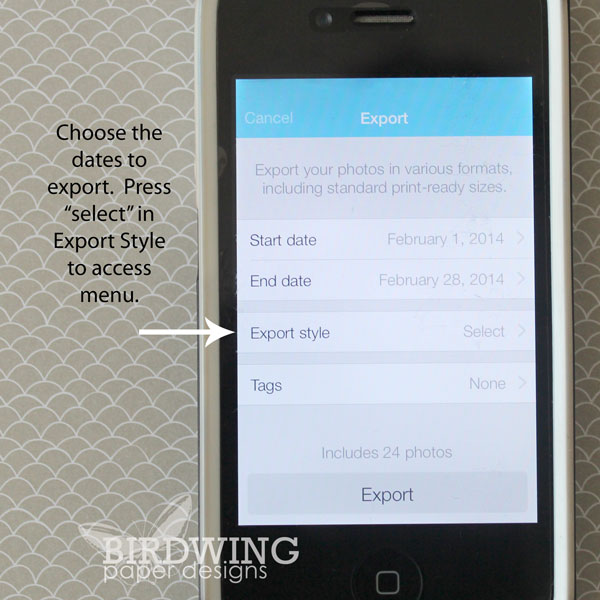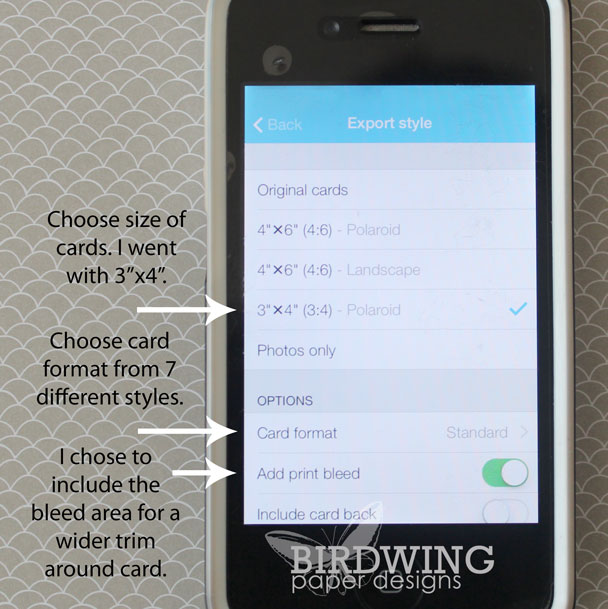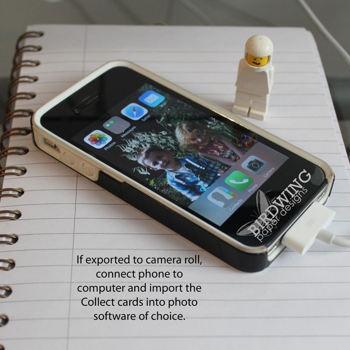 Since photo books are my area of specialty, I didn’t need to print the cards, but rather export them to my computer to be used in Photoshop. I found this tutorial from Persnickety Prints on how to export the cards for individual printing and I followed it as a guide for exporting the cards to the computer. Here is how I did it using an iPhone and iMac: