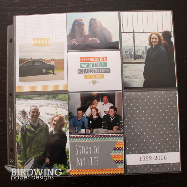 Stampin’ Up recently teamed up with Becky Higgins (creator of Project Life) and now offer several different Project Life kits. I chose to use the Happiness Is kit because it had the most versatile combination of colours and journaling cards to span the fourteen years covered in this album.