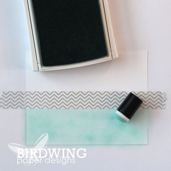 The first step was to ink up the bottom part of a piece of white card stock. I used a strip of washi tape to make the straight edge because I knew it would leave a clean edge and peel off the card stock easily.