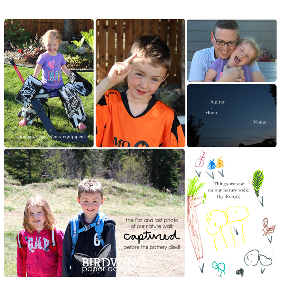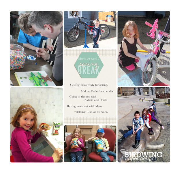The first page (shown below) was dedicated to the fun we had at home during spring break. I am not a fan of busy roads and crowded tourist attractions, so we didn’t roam far from home for spring break. We also just replaced our roof, so there went the vacation fund!