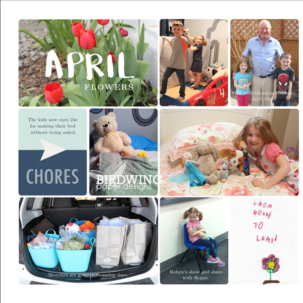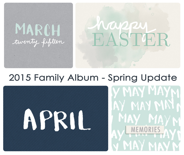 A few months ago the Simply 2015 digital kit was introduced and I shared a few pages (January, February, and March) of this year’s family album. Now that summer is almost here (officially June 21), I thought it was time for an update on the spring pages that have finally been completed.