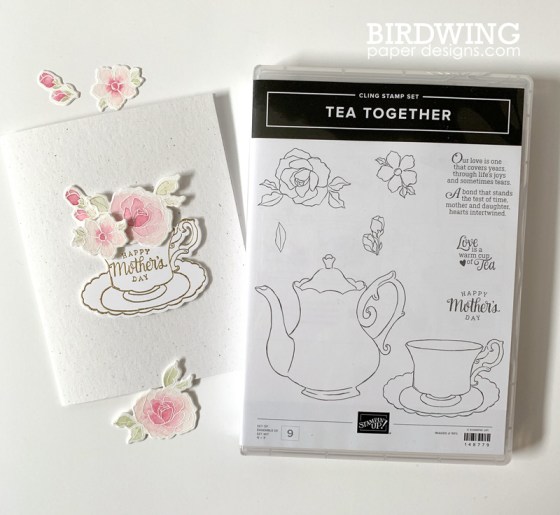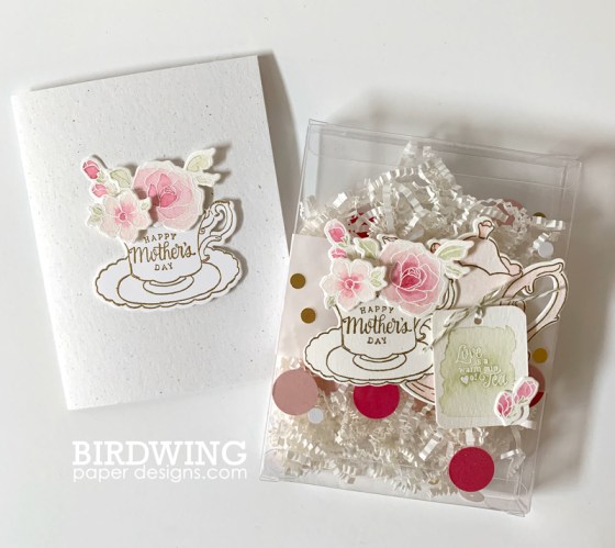 This Mother’s Day, I have created a clear gift box with matching card. This set was inspired by the Tea Together stamps from Stampin’ Up! and is perfect for Mom! It combines two of my favourite things: flowers and tea!!