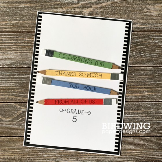 Each card was hand stamped, cut, and designed by Birdwing Paper Designs using products from Stampin’ Up!. I love how these pencils turned out using kraft paper, cardstock, silver paper and stamps from the Crazy About You set.