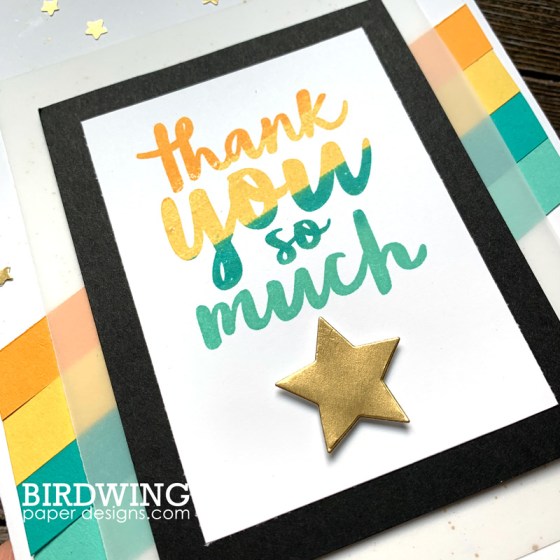 I make a lot of floral cards, so I challenged myself to not use any flowers for these teacher cards! I tried to keep them bright, colourful, and fun like this next Gold Star card. (Colours used are Mango Melody, Daffodil Delight, Bermuda Bay, and Coastal Cabana.)