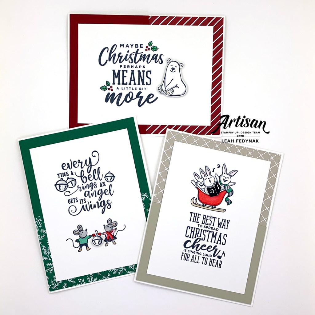 For the upcoming holiday season, I have four new holiday bundles available on my Etsy Store. Each bundle consists of 3 handmade cards and includes clear or white envelopes. All cards are made using Stampin’ Up! products.