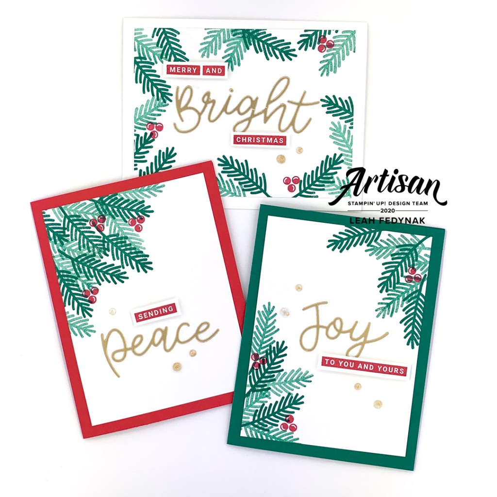 The next bundle is a festive set of cards using the Joy & Peace Bundle. The traditional colours and simple design will make these a holiday favourite.