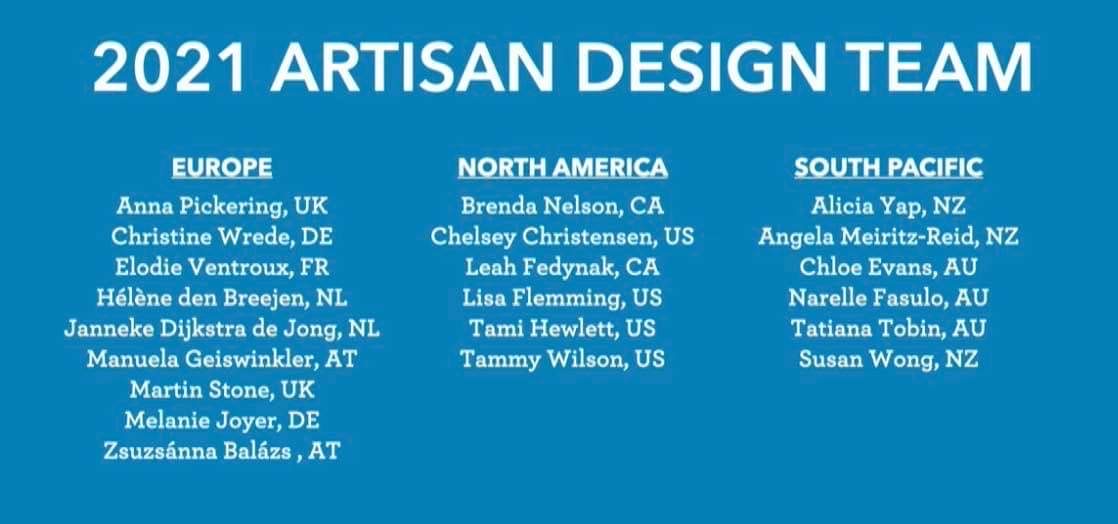 Next year’s team is a big one with 21 Artisans!! I am so excited to share this experience with another Canadian, Brenda Nelson, and… we are even from the same city!!