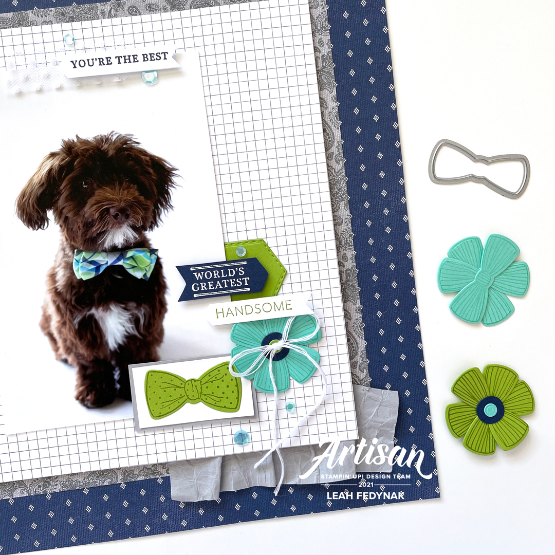 I had there opportunity to work with the Well Suited Suite and as soon as I saw the cute bow tie stamp and die, I knew that I wanted to incorporate it into a scrapbook page featuring our little Havanese dog, Milo!