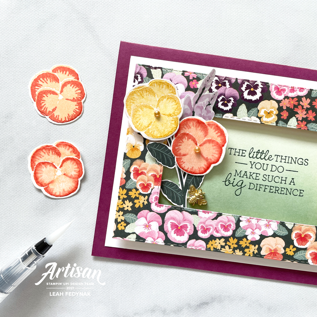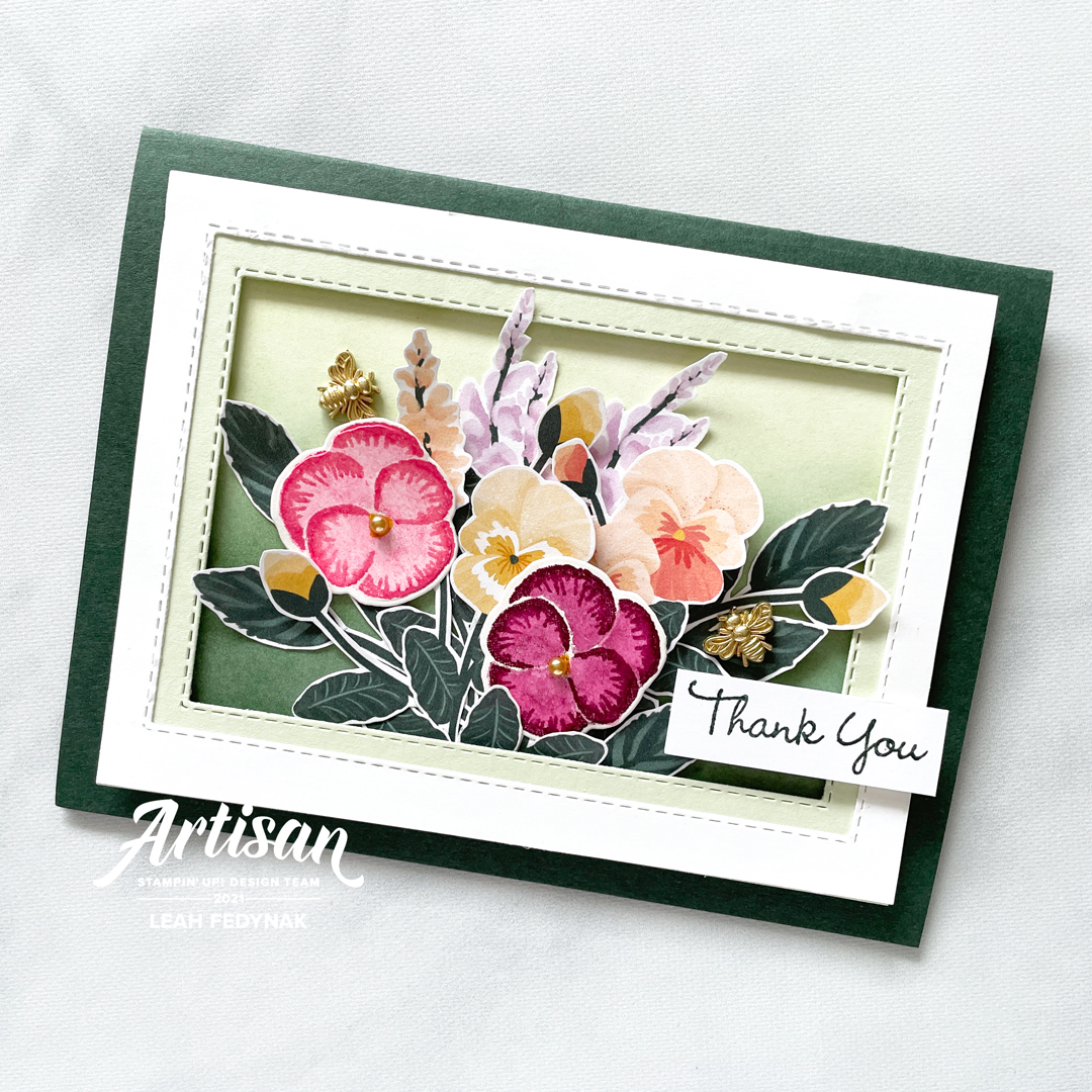 Hello!! I’m Leah from Edmonton, Alberta and welcome to Birdwing Paper Designs! I am a member of Stampin’ Up!’s Artisan Design Team for 2021 and each month we showcase projects using the latest products from Stampin’ Up!. This month, we are using new products from the 2021-2022 Annual Catalogue: Flowers Of Friendship Bundle, Pansy Petals Suite, and Colour And Contour Bundle.