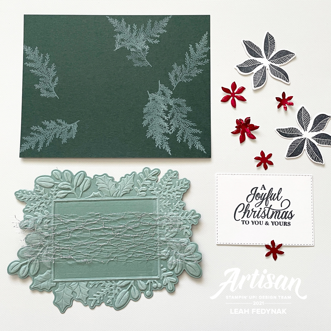 PAPER: Soft Succulent, Evening Evergreen, Basic White Card Stock, Red Foil Sheets, Vellum