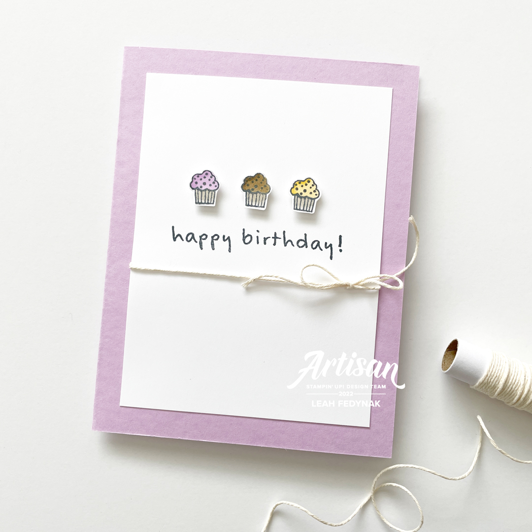 The stamp set that is included in this kit has one more stamp that I just couldn’t resist… the cutest little cupcake!! I made a very simple birthday card with it and it has quickly become one of my favourites!