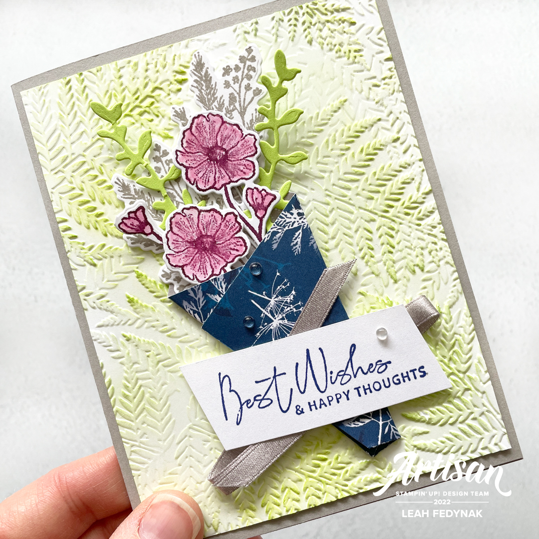 Lucky for me, I was tasked with the Sun Prints Suite Collection for the May Artisan project and I was able to have a play with the Designer Series Paper, Nature’s Prints Bundle, and Fern 3D Embossing Folder.