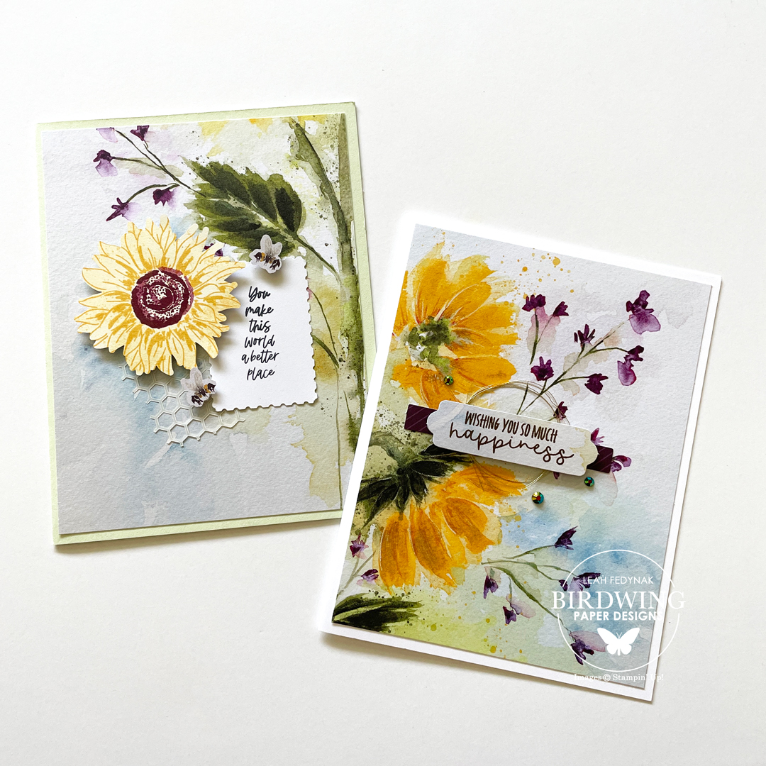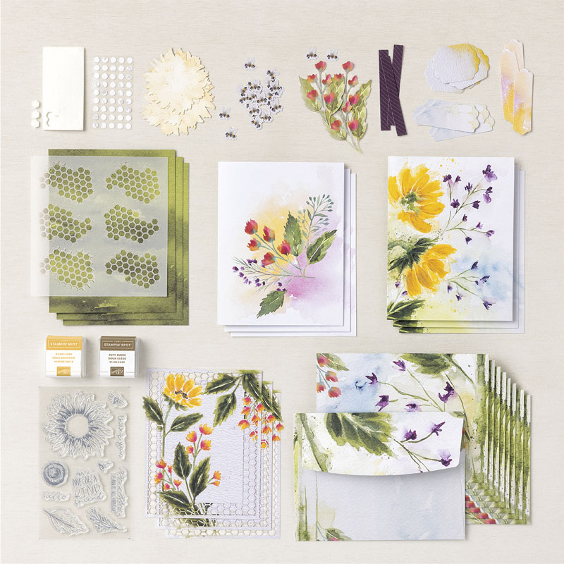 Sometimes Stampin’ Up! comes up with the most amazing Paper Pumpkin Kits, and the kit for August is one of them. I think this is my favourite one so far this year, if not ever!! The kit is filled with summery flowers and features gorgeous sunflowers!! It even comes with 2 Stampin’ Spot colours and bonus gold decorative sheets.