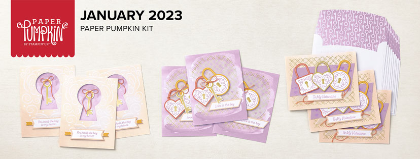 With less than one week until Valentine’s Day, I have a very cute Paper Pumpkin Kit to share with you, the Key To My Heart Kit. I love this one for Valentine’s Day because it is different from any other Valentine set that I have.